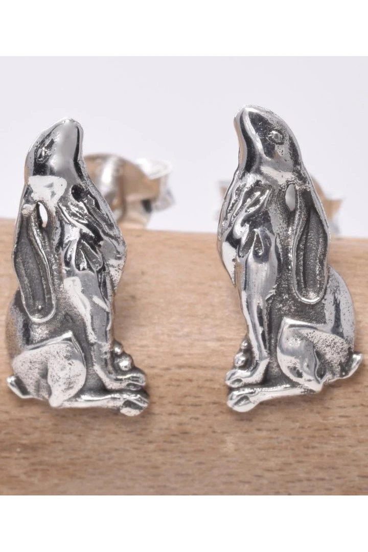 Seventh Sense Sterling Silver Moongazing Hare Stud Earrings.