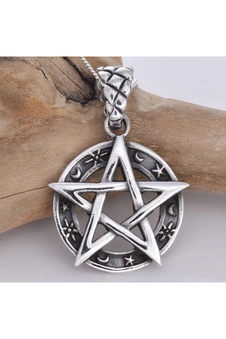Seventh Sense Silver Pentagram Moon Star.