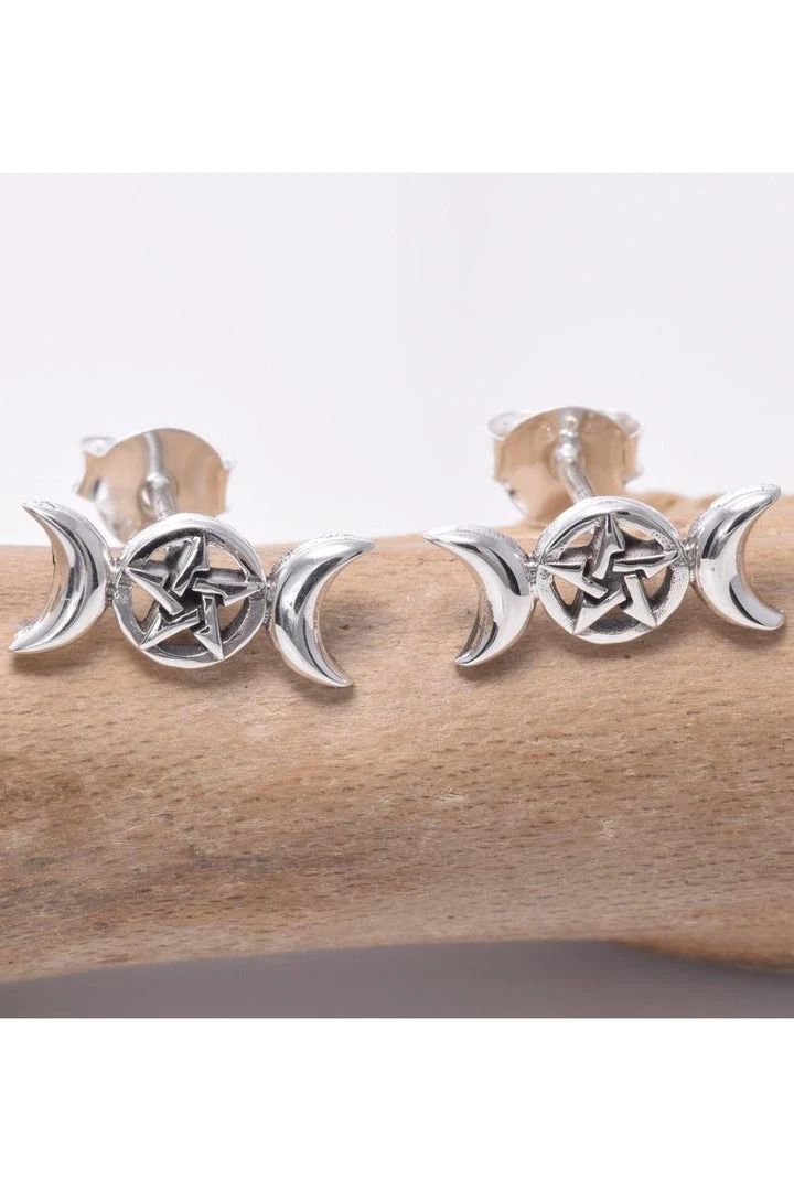 Seventh Sense Silver Triple Moon Stud Earrings.