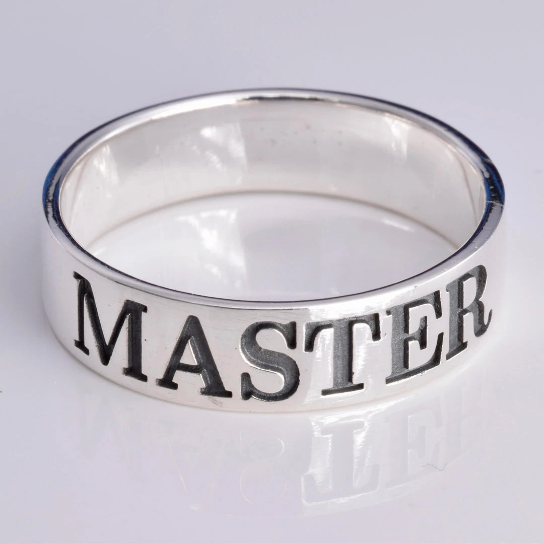This stunning 925 Sterling Silver Band Ring is simple yet elegant. Featuring recessed engraved style lettering depicting the word MASTER.