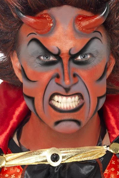 Dressing as a Something Devilishly Good for Halloween? Complete your Devil fancy dress costume with this complete Special Effects Kit. Included is Face-paints, Red Devil Base Colour, Devil Horns, Sponge and Brush.
