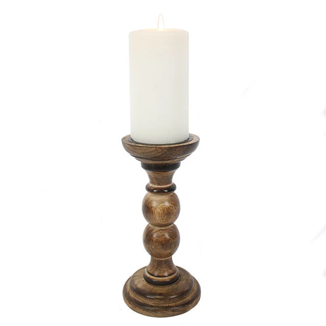 This dark antique wooden candle stand will be the perfect finishing touch to a mantlepiece or dining table. With it’s antique charm this candle stand is ideal to sit within a rustic range. Candle not included