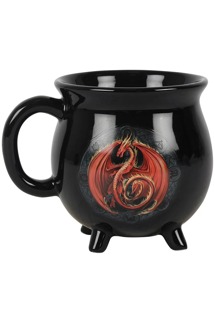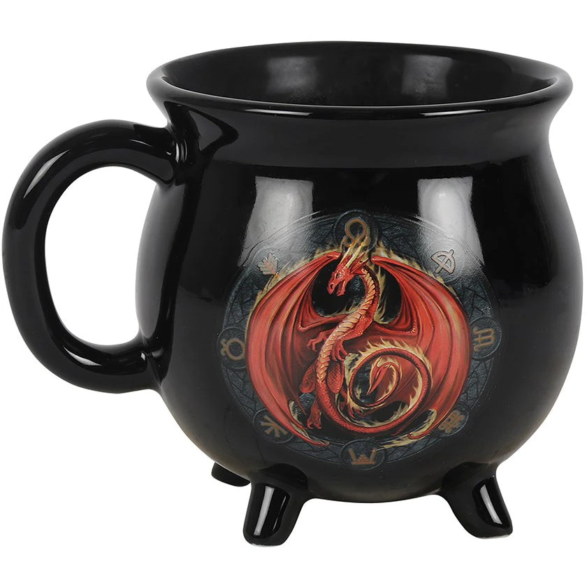 The fantastic art of Anne Stokes is brought to a new, magical dimension with our exclusive colour-changing cauldron mugs. Just pour a hot beverage inside and watch as a halo of sabbat symbols are slowly illuminated behind a red Beltane dragon.