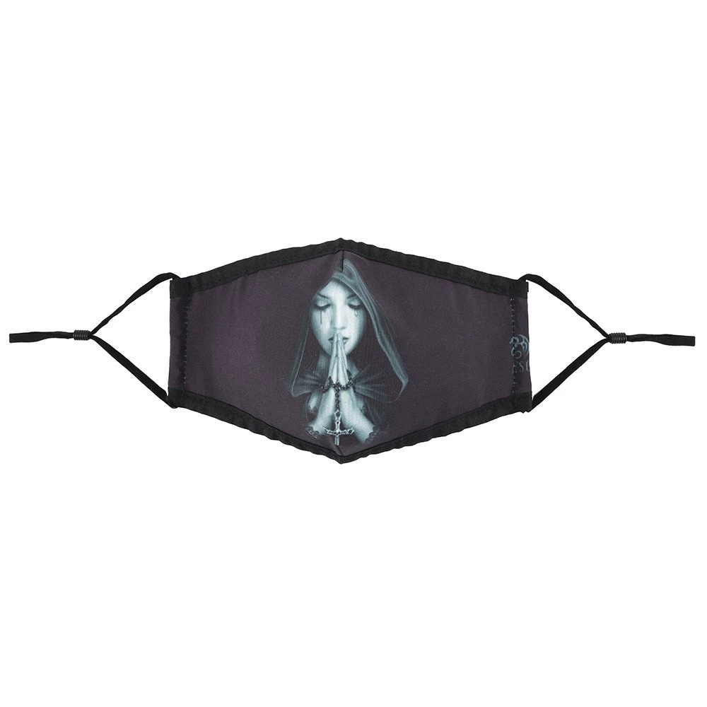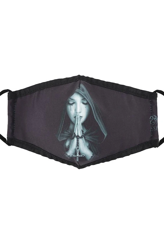 A triple-layered face covering featuring the popular ‘Gothic Prayer’ artwork by Anne Stokes. Non-medical. This face covering is not a medical mask and is not a replacement for social distancing. Outer: 50% cotton, 50% polyester. Middle: non-woven. Inner: 100% cotton. Wash at 60 degrees and air dry after every use.