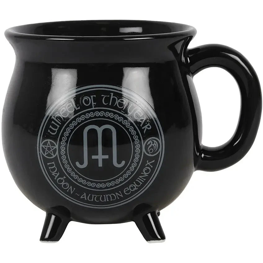 The fantastic art of Anne Stokes is brought to a new, magical dimension with our exclusive colour-changing cauldron mugs. Just pour a hot beverage inside and watch as a halo of sabbat symbols are slowly illuminated behind a green Mabon dragon.