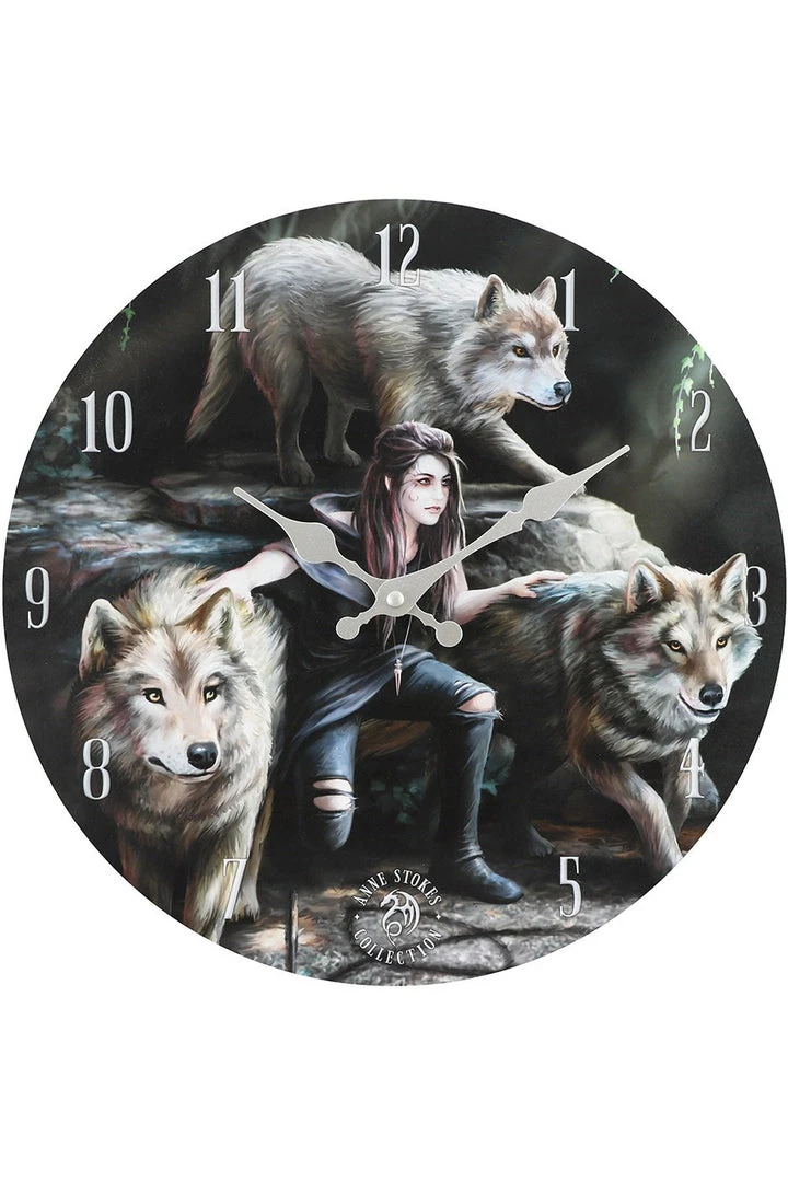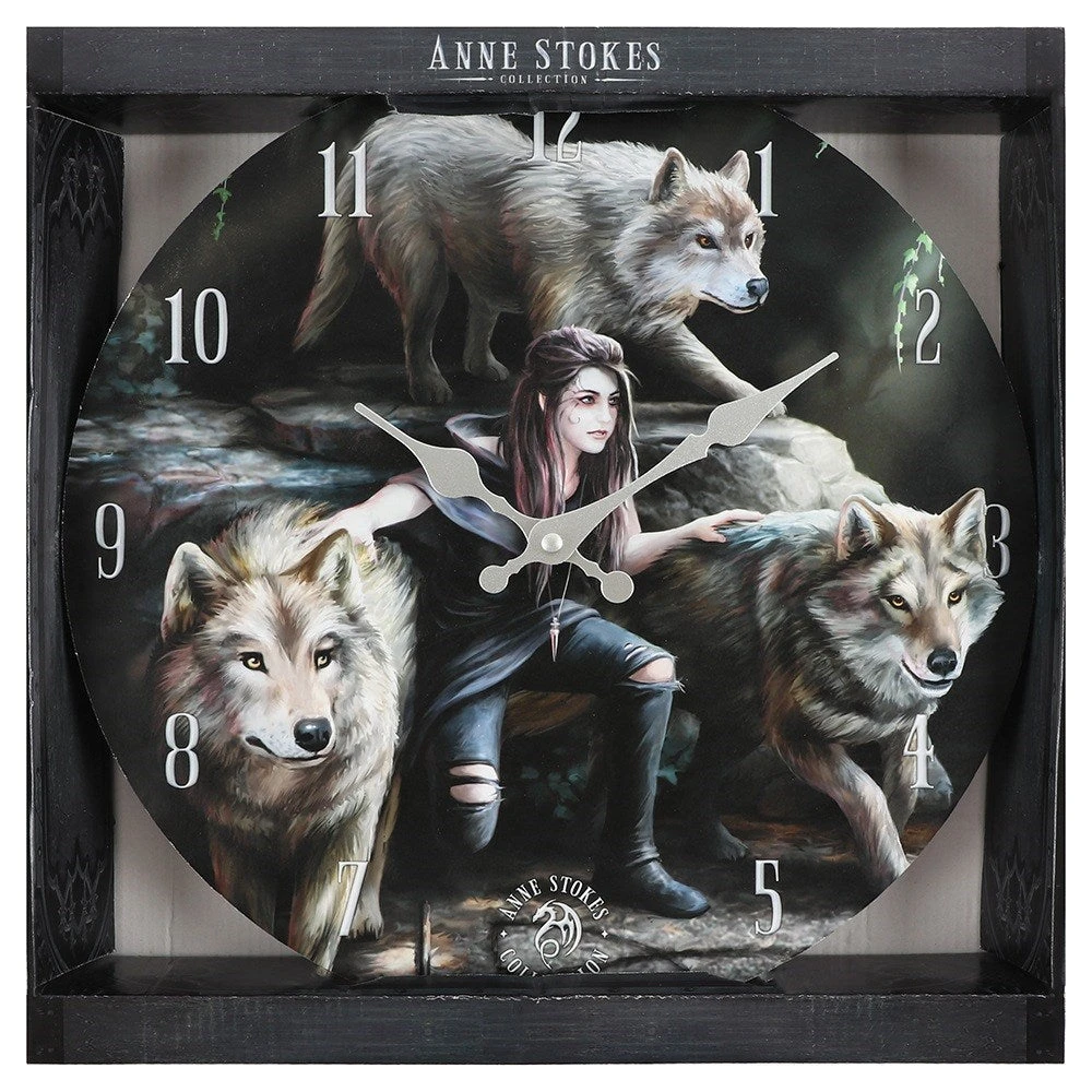 Power of Three Wall Clock. Wolf design by popular fantasy artist Anne Stokes. Requires 1x AA battery to operate which is not included.