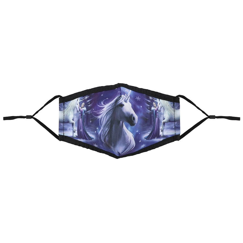 A triple-layered face covering featuring the ‘Pure Magic’ unicorn artwork by Anne Stokes. Non-medical. This face covering is not a medical mask and is not a replacement for social distancing. Outer: 50% cotton, 50% polyester. Middle: non-woven. Inner: 100% cotton. Wash at 60 degrees and air dry after every use.