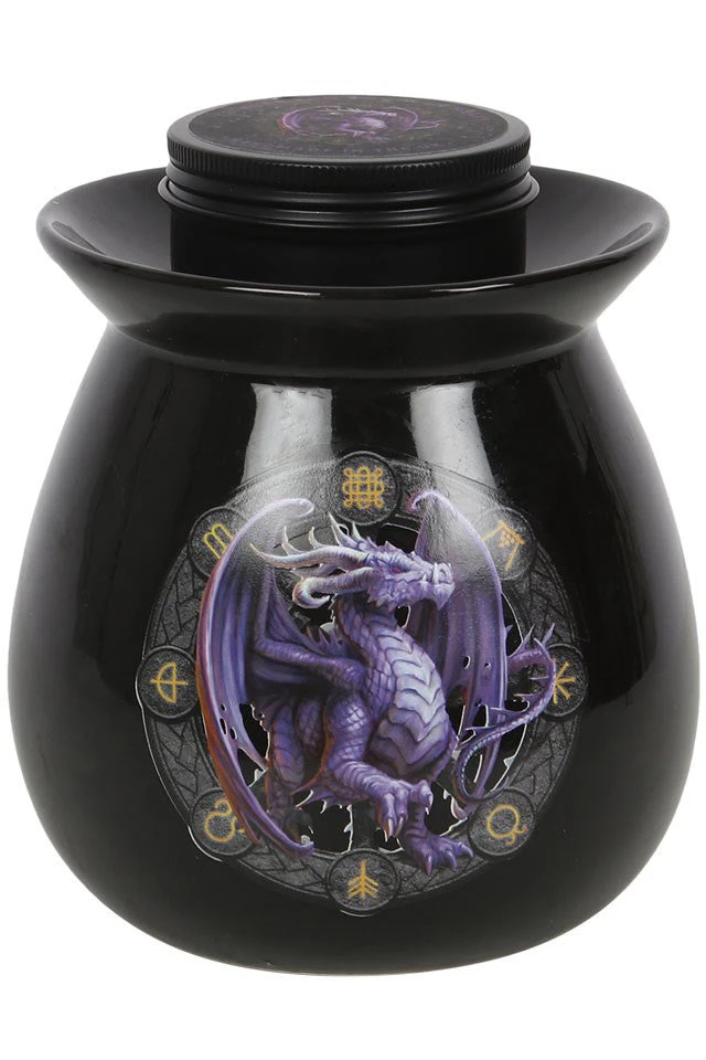 This oil burner and spice scented wax melt gift set features the ‘Samhain’ dragon design printed in high quality colour. Part of the ‘Dragons of the Sabbat’ artwork series by fantasy artist Anne Stokes.