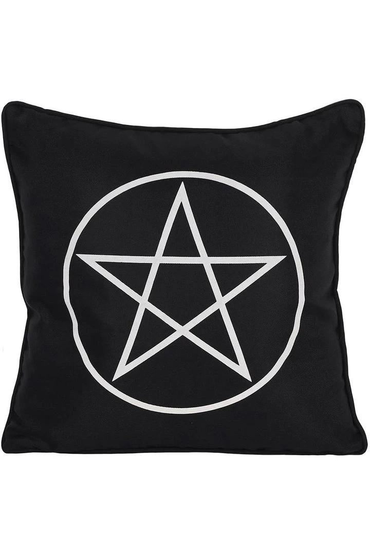 This lovely square fabric cushion is black in colour with a white pentagram design. Zip closure so inner can be removed.