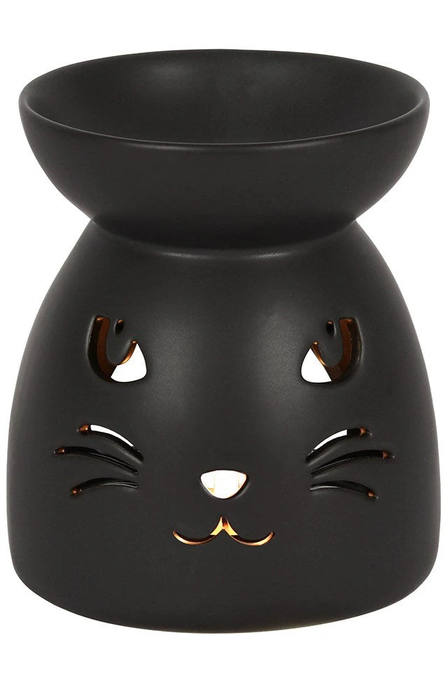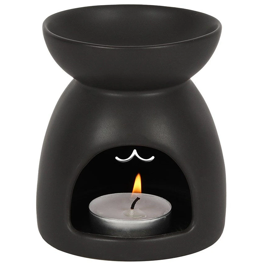This black ceramic oil burner features a cutout cat face and a cool, matt finish. Compatible with both fragrance oil and wax.