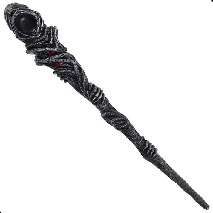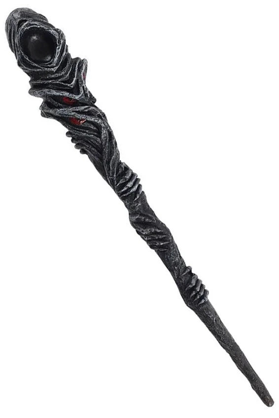 A wand for the dark witches and wizards, this special style features a cloaked grim reaper figure, piercing red monster eyes, and sharp claws grasping a twisting, moulded branch. At 24cms long, this resin wand is the perfect size for casting spells. Handle with care.