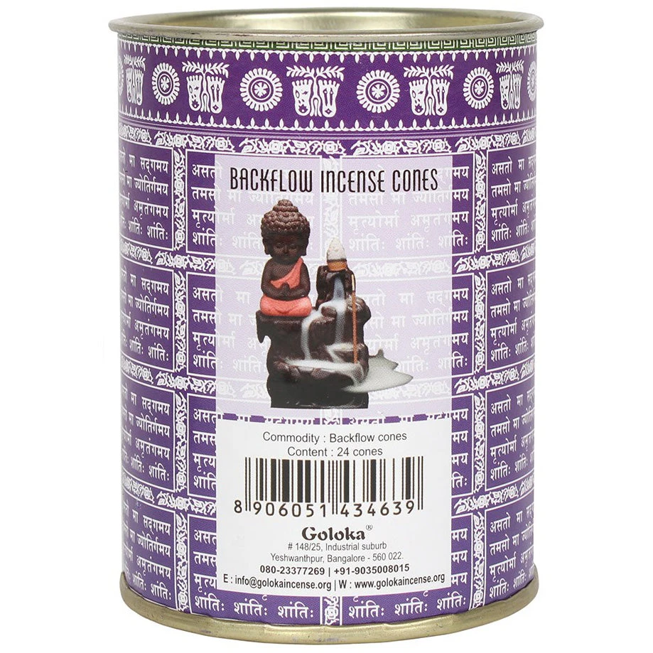 These Goloka incense backflow cones come in a handy resealable tin. There are 24 cones in each tin with a burning time of approx 20 minutes per cone. These Lavender incense cones can be used along with a backflow burner to create impressive smoke flow displays.