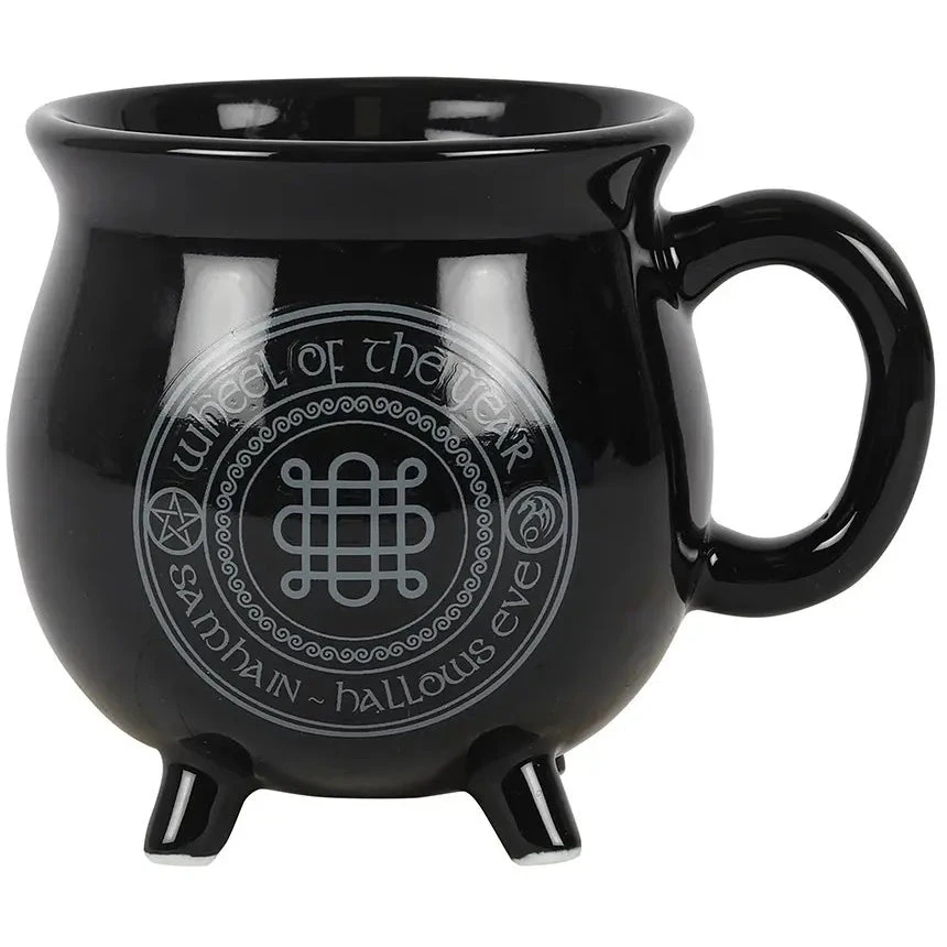 The fantastic art of Anne Stokes is brought to a new, magical dimension with our exclusive colour-changing cauldron mugs. Just pour a hot beverage inside and watch as a halo of sabbat symbols are slowly illuminated behind a purple Samhain dragon.