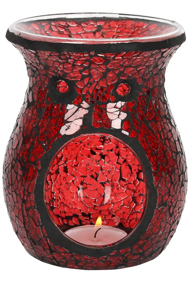 Beautiful large oil burner with a red crackle effect. May also be used as a wax melt burner. This popular item is also available in other oil burner designs and as matching candle holders.