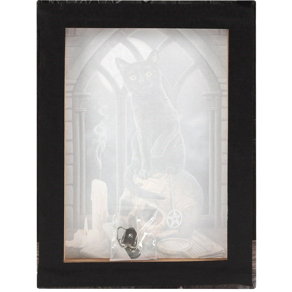 Lisa Parker bewitching Salem design with a striking raven perched on a weathered skull in front of a bright, full moon.