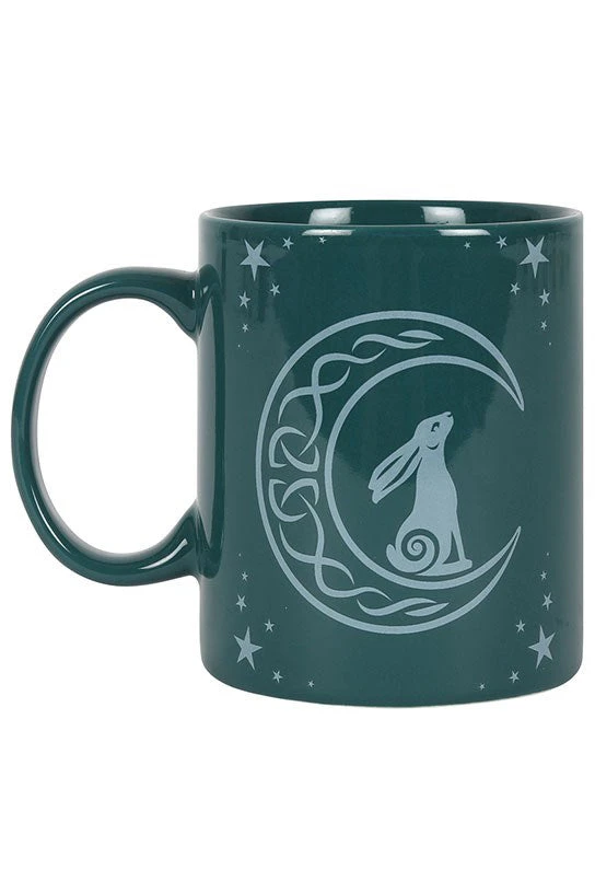 This green bone china mug features a moon gazing hare surrounded by stars, representing growth and good fortune. Comes in a matching display box and makes a thoughtful gift for the spiritual.