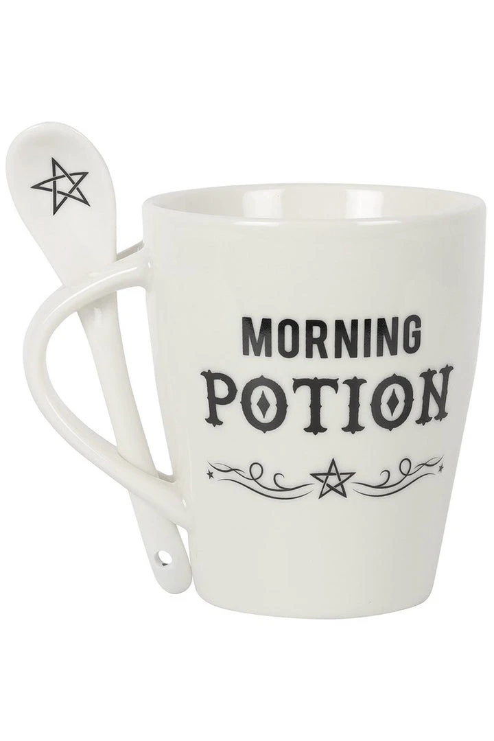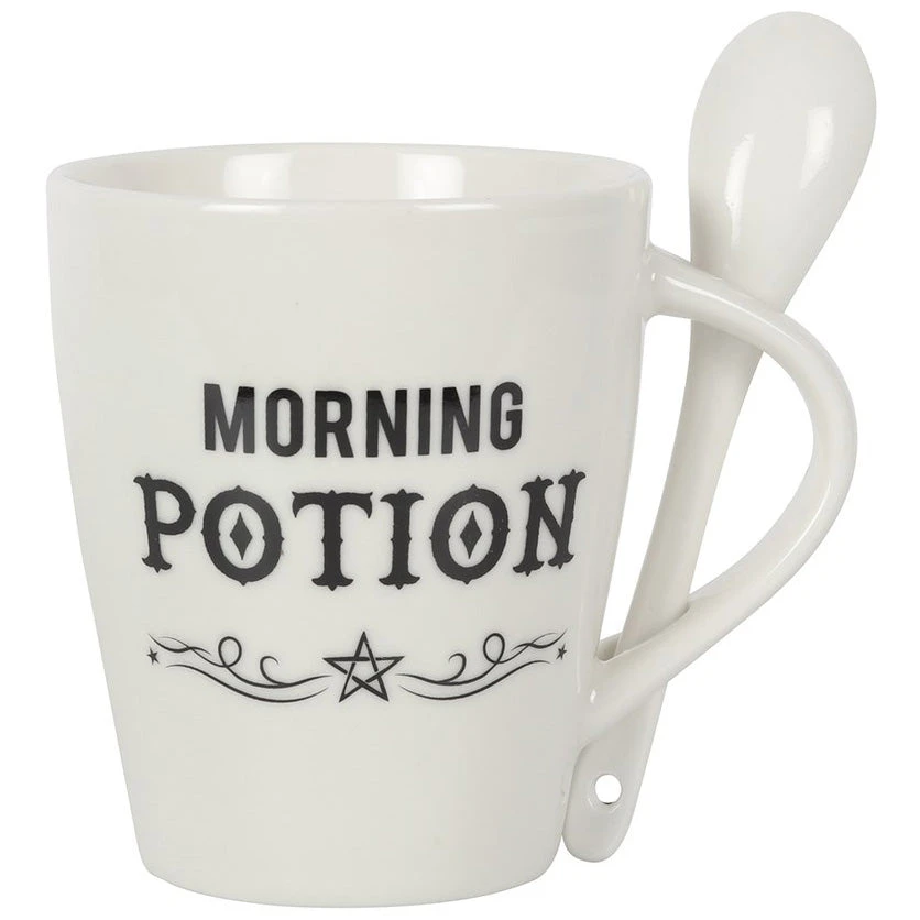 This bewitching mug and spoon set will add a pinch of magic to every cuppa. Style features ‘Morning Potion’ text and matching teaspoon with a pentagram design that fits perfectly in a slotted handle.