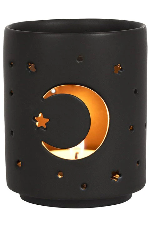 Small Black Mystical Moon Cut Out Tealight Holder.