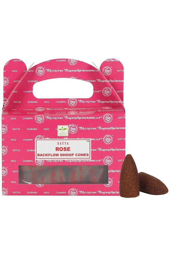 Beautifully scented Rose backflow incense cones developed by Satya. The cones are crafted using the highest quality ingredients to offer long lasting fragrance. Use these cones with a backflow incense burner to create stunning smoke displays.