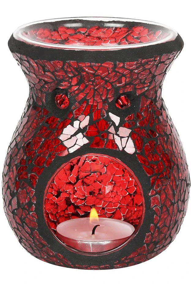 Beautiful small oil burner with a red crackle effect. May also be used as a wax melt burner. This popular item is also available in other oil burner designs and as matching candle holders.
