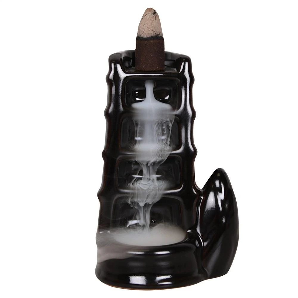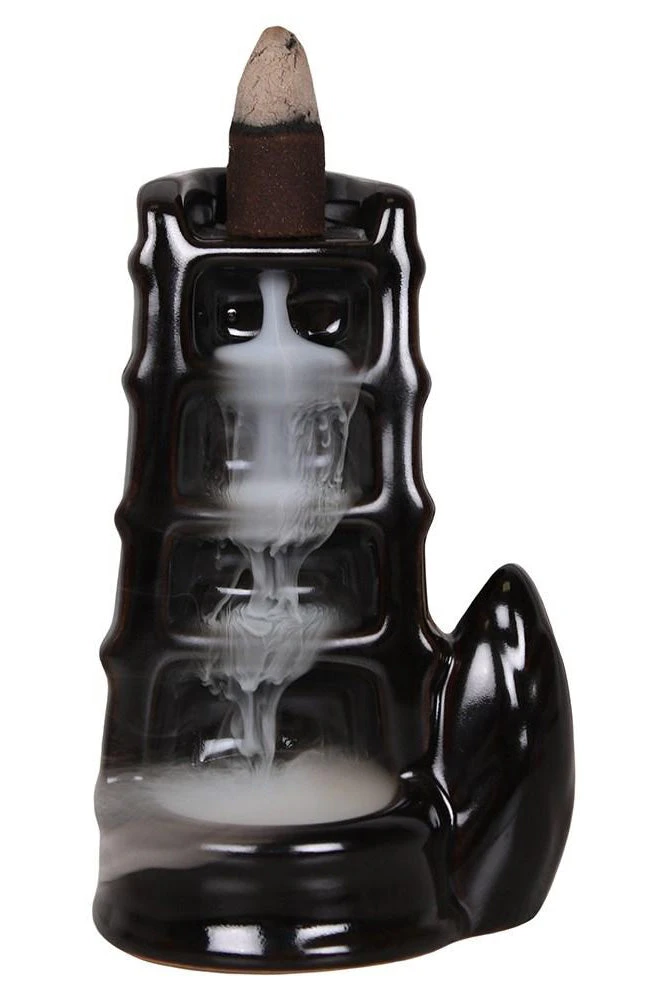 Only backflow incense cones should be used with this product – standard incense cones will not create the desired effect. It is normal for cones to take up to 10 minutes after being lit to start creating the smoking/mist effect. We supply a selection of backflow incense cones in a variety of scents.