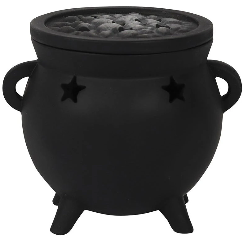 Place an incense cone inside of this resin triquetra cauldron burner and watch the smoke gently rise from the top. Accented by cutout stars and a triquetra design with a removable ‘bubbling’ brew top.