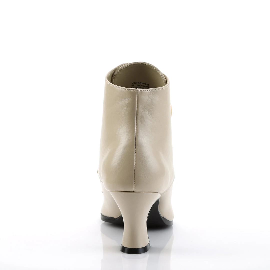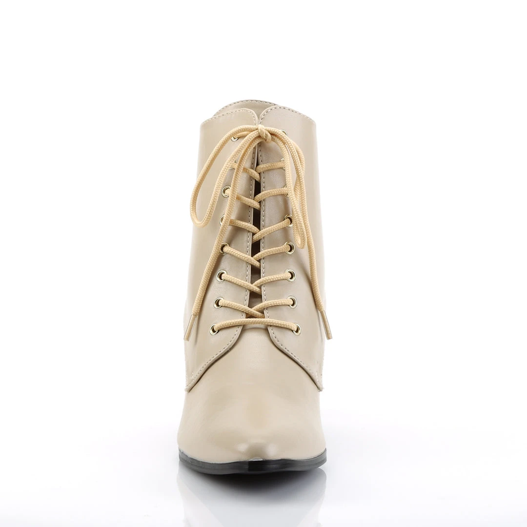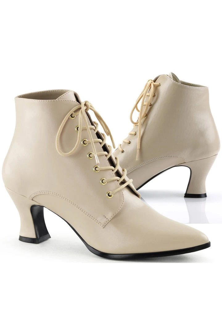 Funtasma Ladies Victorian Boots. Cream leather effect ankle boots with kitten heel and front lacing. Victorian Boots / Steampunk Boots for your Victorian Costume / Steampunk Costume.