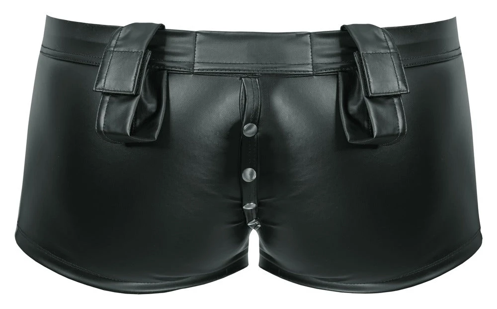 An exclusive and capitative design! Black pants from Svenjoyment Bondage made out of beautiful matte look. Tight-fitting but stretchy which means that they are extremely comfortable to wear. With a row of press studs at the front that goes over the crotch and stops at the top of the buttocks. There are two included handcuffs attached to the waistband at the back. The handcuffs keep the hands restrained at the back. The matte look handcuffs have hook and loop fasteners.