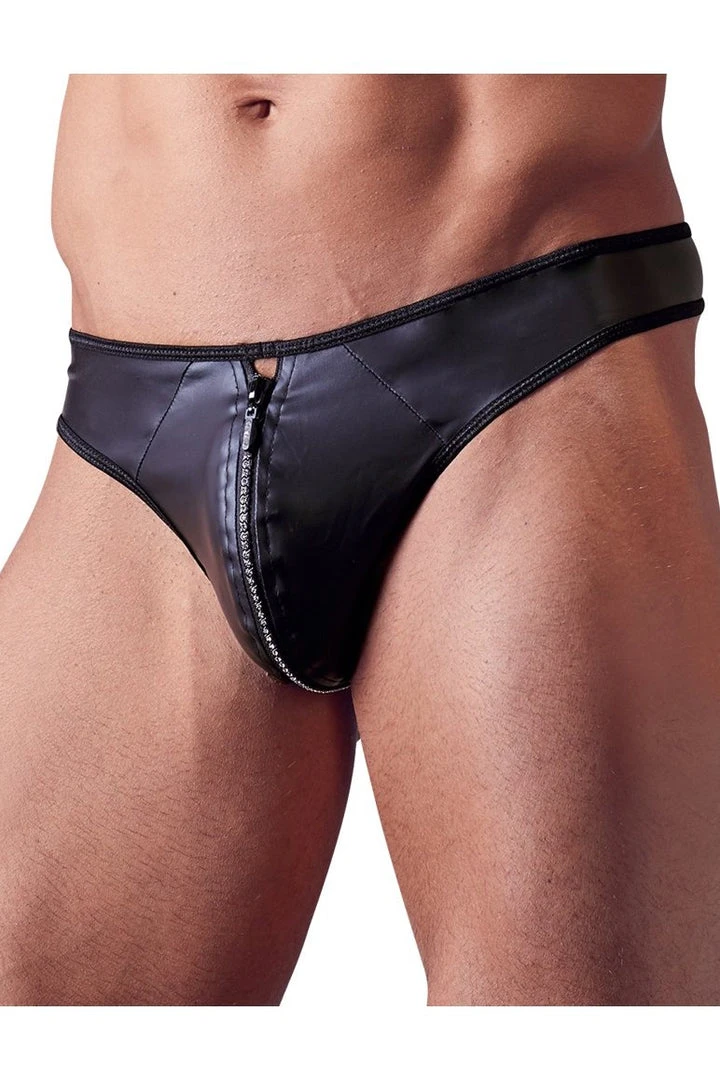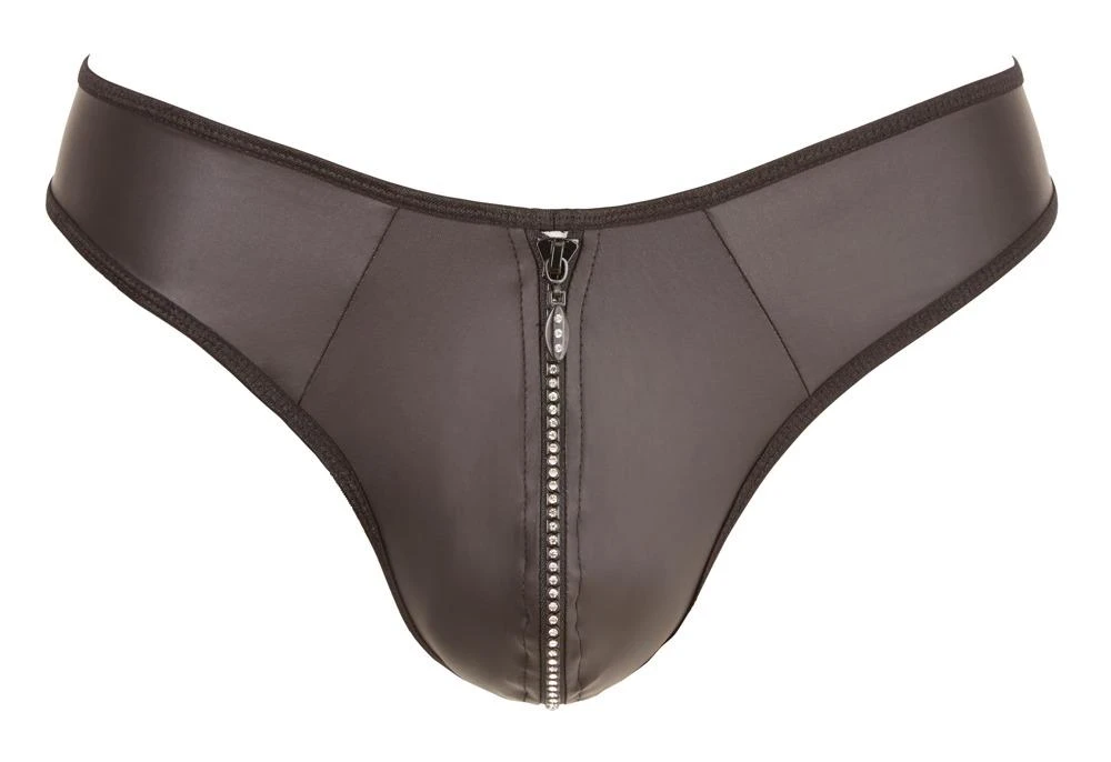 Beautiful matte neoprene with rhinestones! Sexy black G-string with a sparkly extra: there is a rhinestone zip at the front that opens the string in the blink of an eye!