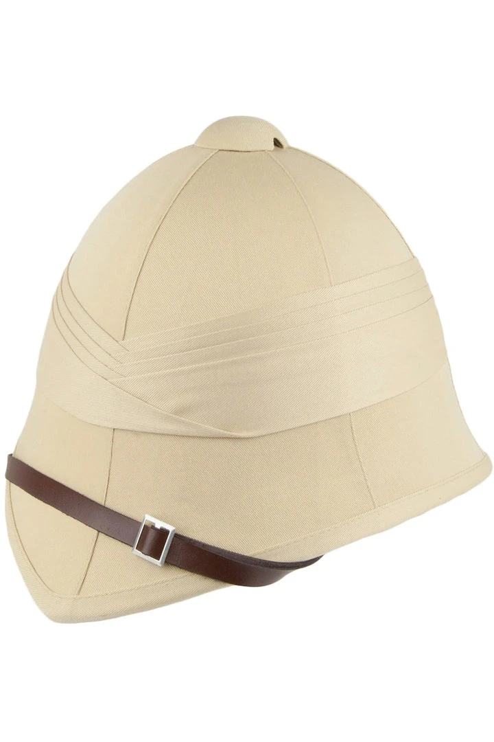 Dr Livingston, I presume? This fantastic steampunk style pith helmet style (also known as UK Pith Helmet) is associated with British colonial and foreign service history. It is made from trees grown in the northern part of Vietnam. The material can sustain heavy sunlight as well as rain. When wet the hat may become a bit softer, but then dries to its original state. The Vietnamese learned the art of pith helmet manufacturing a hundred years ago from the French during their occupation.